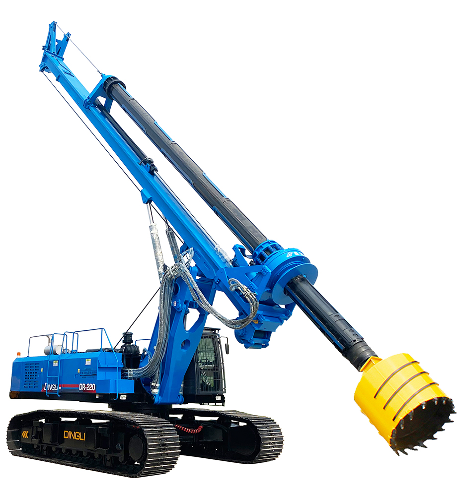 此款旋挖钻机*大钻孔深度可达到60m,钻孔直径600-2200mm,动力头*大扭矩为220KN.m,装配大功率康明斯品牌发动机,川崎液压传动系统,保障施工动力输出强悍稳定。机器配备高承载能力的可伸缩式履带底盘,可克服复杂施工作业路况,底盘伸缩功能可提高钻机施工作业的机身重心,增加其稳定性。钻机桅杆具备自动调垂功能,可向前5度倾斜,左右5度侧摆,以适用于不同工况下调整钻进角度。钻机装配新型操控系统,可通过无线遥控操控实现行驶转向、底盘伸缩、机身旋转、桅杆起落等功能。本公司为研发制造公司,所有机型均为自主设计制造,产品拥有CE、ISO、SGS等多项质量管理体系认证。